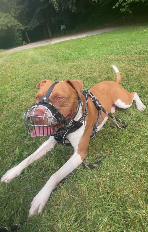 Extrait de l’évaluation « Chien obéissant et pas d’agressivité vis à vis des humains mise en évidence. Nous pouvons noter une agressivité intraspécifique qui impose le port de la muselière et la tenue en laisse en extérieur lors des promenades et une éducation visant à socialiser le chien vis à vis de ses congénères »