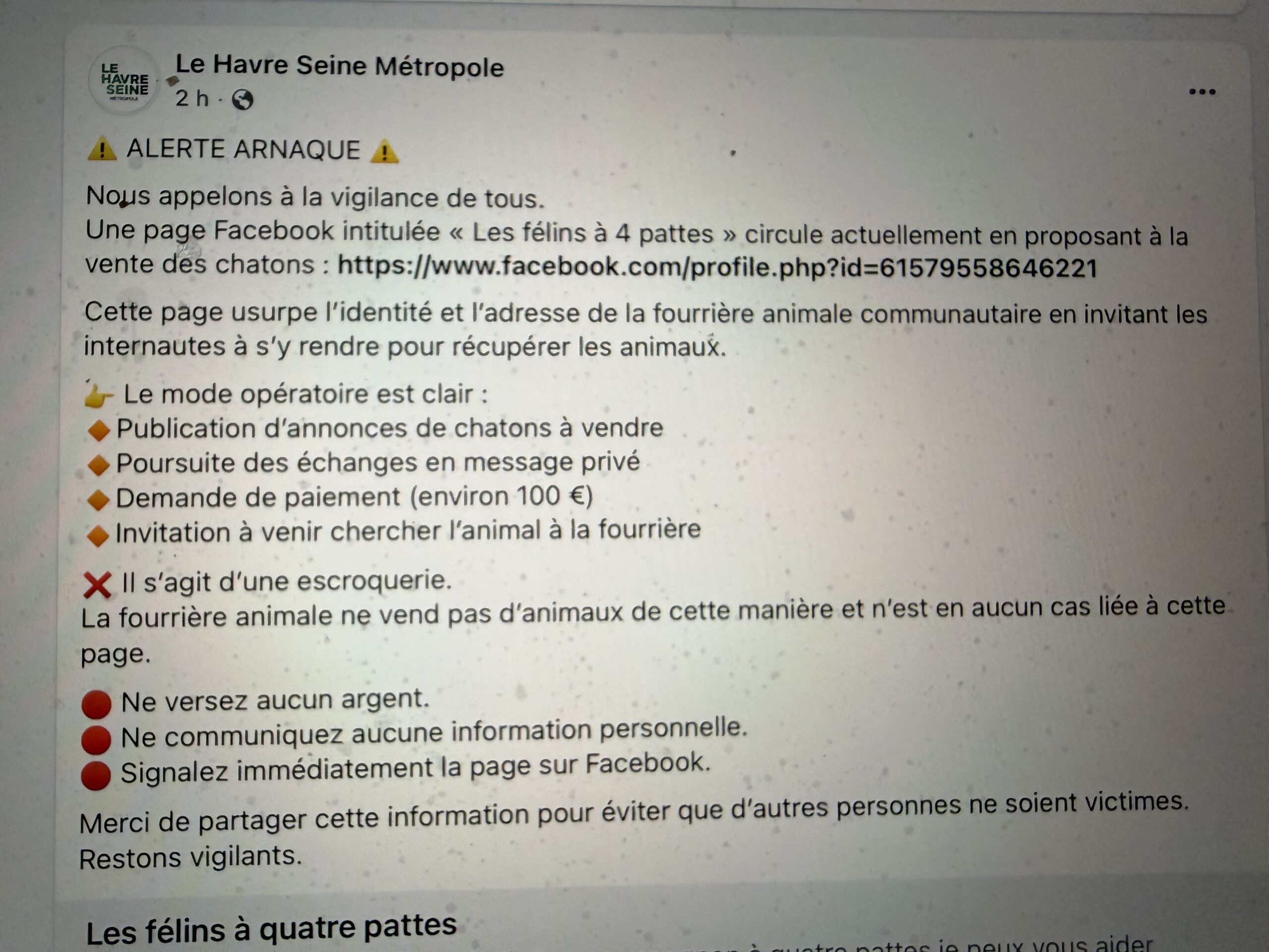 ATTENTION ARNAQUE